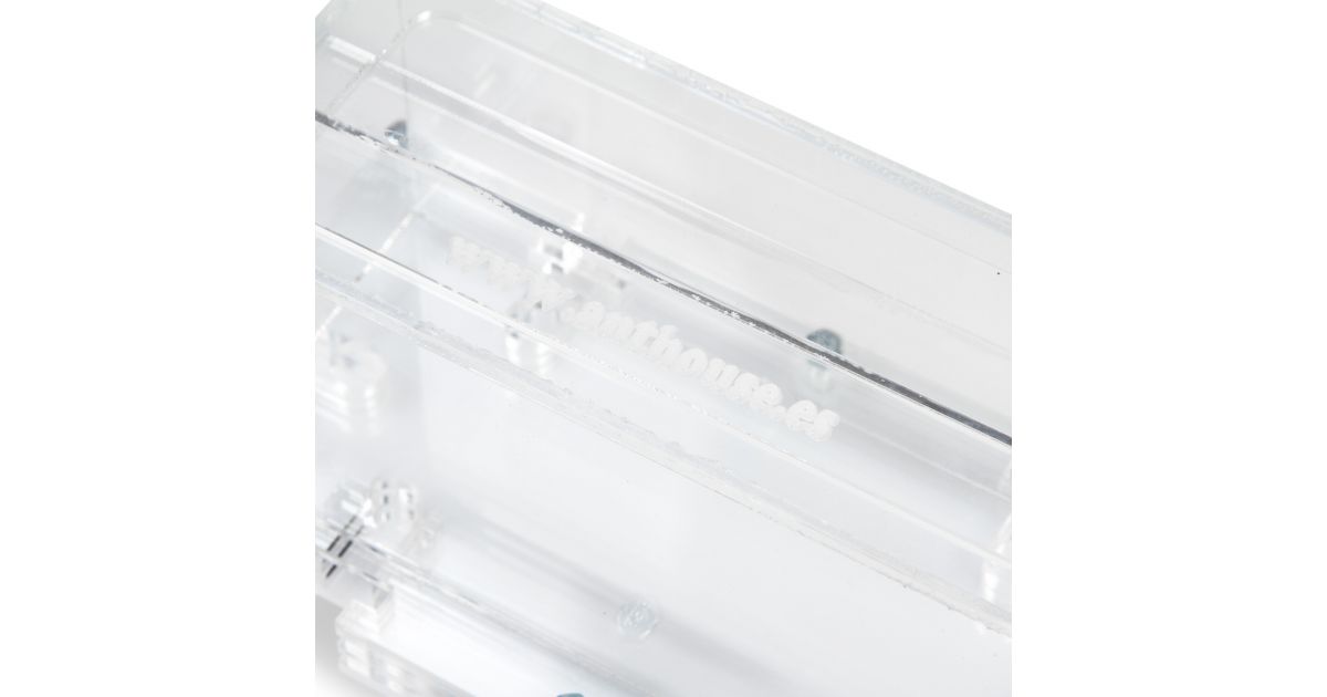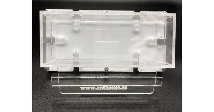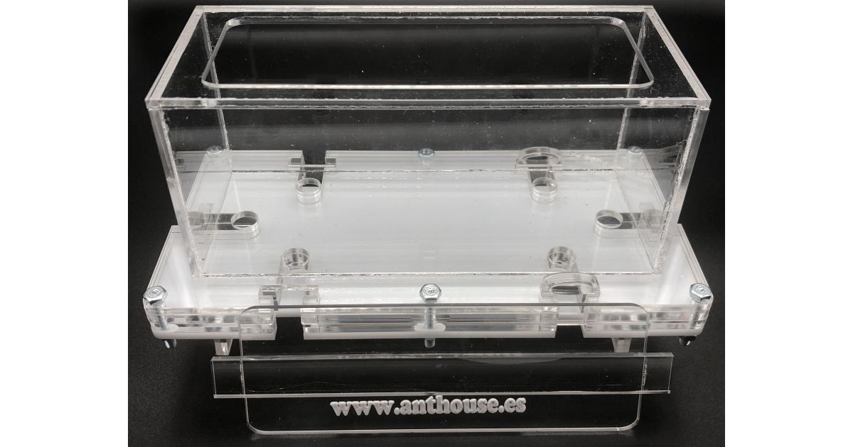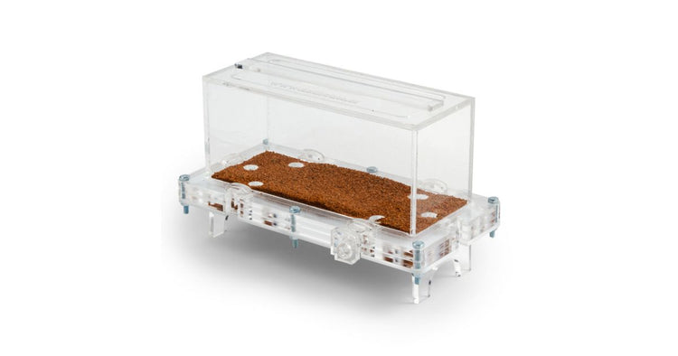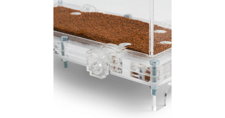 La nostra area di foraggiamento modulare Grande permette l'utilizzo di abbeveratoi da 3ml e la possibilità di mettere qualsiasi mangiatoia o vassoio per il cibo. È totalmente collegabile agli altri moduli, rendendo possibile l'ampliamento dell'area di foraggiamento quanto necessario, secondo le necessità delle nostre formiche.
