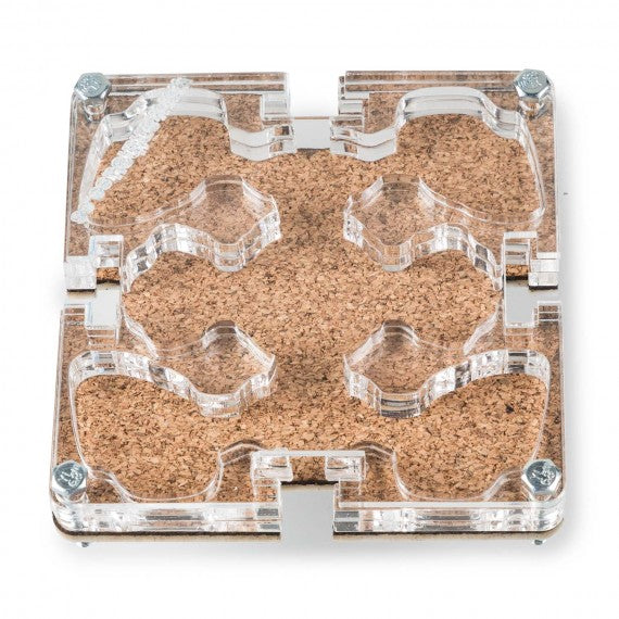 Il Nostro Modulo 10x10 Sughero è totalmente adeguato per essere connesso con gli altri 4 moduli, permettendo le varie combinazioni secondo le necessità di ogni specie di formica...