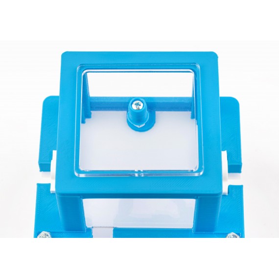 Il serbatoio è ancorato e fissato al formicaio con due elastici di gomma e uno speciale sistema di chiusura con viti molto lunghe, in modo tale che si possa trasportare e spostare il formicaio senza perdita di funzionalità.