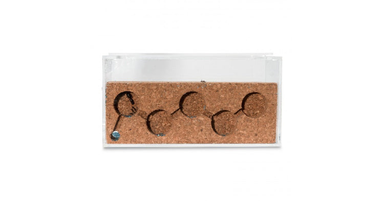 Il Kit La Casa delle Formiche Sughero Acrilico è formato da una vasca con una parete laterale rivestita in sughero con gallerie. La base viene utilizzata come area per il foraggiamento. Ha inoltre un coperchio dello stesso materiale e le formiche adatte Camponotus barbaricus.