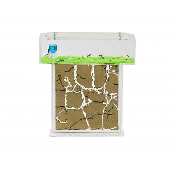 Formicaio in Acrilico che  ha, incorporata, la scatola di foraggiamento nella parte superiore e un coperchio mobile...