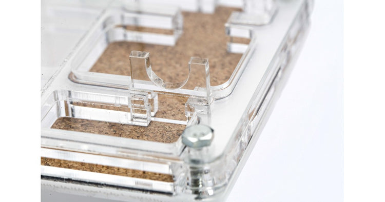 NaturColor formicaio 10x10x1,3 cm Sughero. Perfetto per giovani colonie e specie che non necessitano di umidità. Include una stanza di foraggiamento extra large 5x7 con copertura.