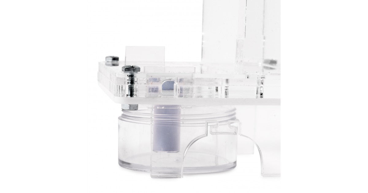Il serbatoio è ancorato al formicaio grazie a una gomma elastica, con la quale possiamo trasportarlo e spostarlo senza perdita di funzionalità.
