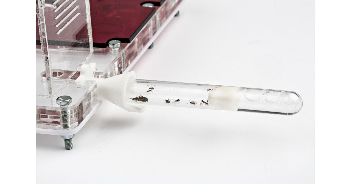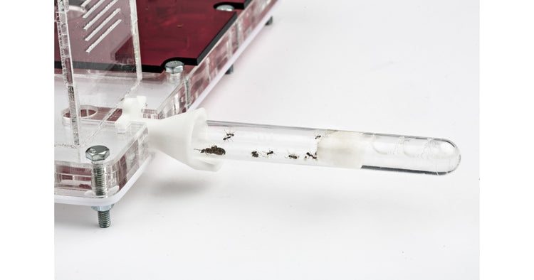 Ha un buco per collegarlo con altri formicai o scatole di foraggiamento. Include tappi di chiusura dello stesso materiale.