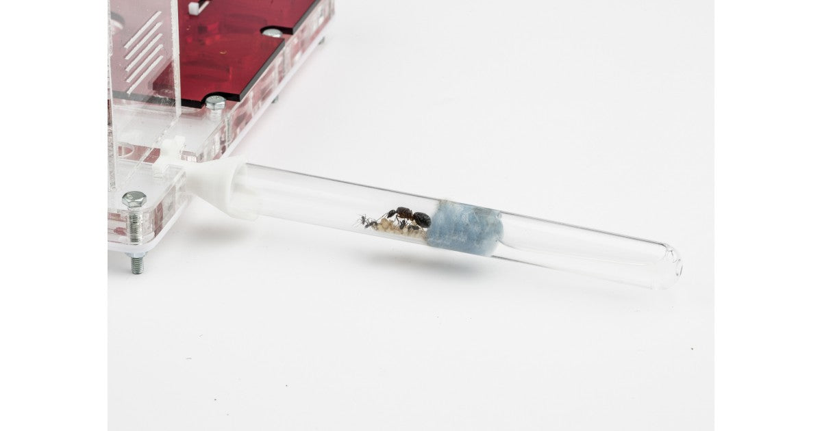 Introdurre formiche nel formicaio dall'area foraggiamento, manualmente noi ribaltare il tubo di trasporto con le formiche della zona, sempre con estrema attenzione, possiamo anche collegare provetta attraverso il nostro modulo cliccare QUI appositamente progettato per esso, che evita molto stress o utilizzando un tubo flessibile per collegare la provetta anche con il nido, ciò richiede un tubo flessibile e un 8-10 mm 8-6 mm clicca qui.