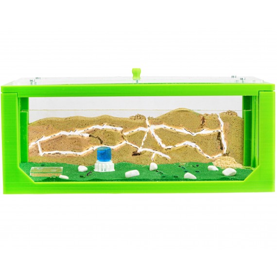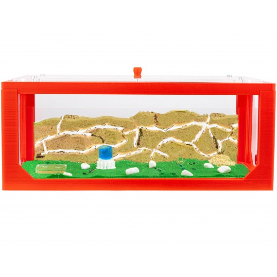 Descrizione: Il formicaio Kit Anthouse Avvio-BIG-3D è una vasca di Acrilico, che su un lato ha una lamina di acrilico attaccato (sandwich), lasciando uno spazio di 1,5 cm (qui è dove vivranno le formiche) con un coperchio, anch'esso in acrilico. Possiamo mettere il cibo nella base (terreno) del formicaio, che possiamo decorare con sabbia extra e qualche piccola pianta o roccia.