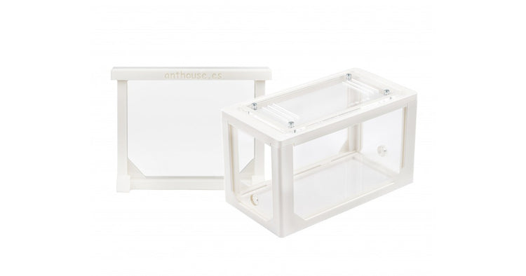 La fattoria di formiche Sandwich-Acri/Mini è composta da un pannello a sandwich in acrilico e da una scatola per il foraggiamento dello stesso materiale. Il sandwich si connette, attraverso un tubo, alla scatola per il foraggiamento, che viene utilizzata per mettere il cibo...
