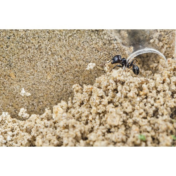 Una volta montato il formicaio, possiamo fare qualche piccolo buco nella sabbia, con un bastoncino, per rendere più facile per le formiche la costruzione delle gallerie. A questo punto, possiamo introdurre manualmente le formiche nel sandwich, versando il contenuto della provetta di trasporto in cui si trovano. Il tutto deve essere fatto con estrema attenzione e, se possibile, vicino i buchi precedentemente realizzati, in modo tale che quando le formiche cadono sulla sabbia, abbiano un rifugio.