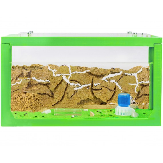 Descrizione: Il kit Anthouse Avvio 3D è una piccola vasca di acrilico, che su un lato ha un pannello di acrilico attaccato (sandwich), lasciando uno spazio di 1,5 cm (qui è dove vivranno le formiche), con un coperchio, anch'esso in acrilico. Possiamo mettere il cibo sul fondo (terreno) del formicaio, che possiamo decorare con sabbia extra e qualche piccola pianta o roccia.